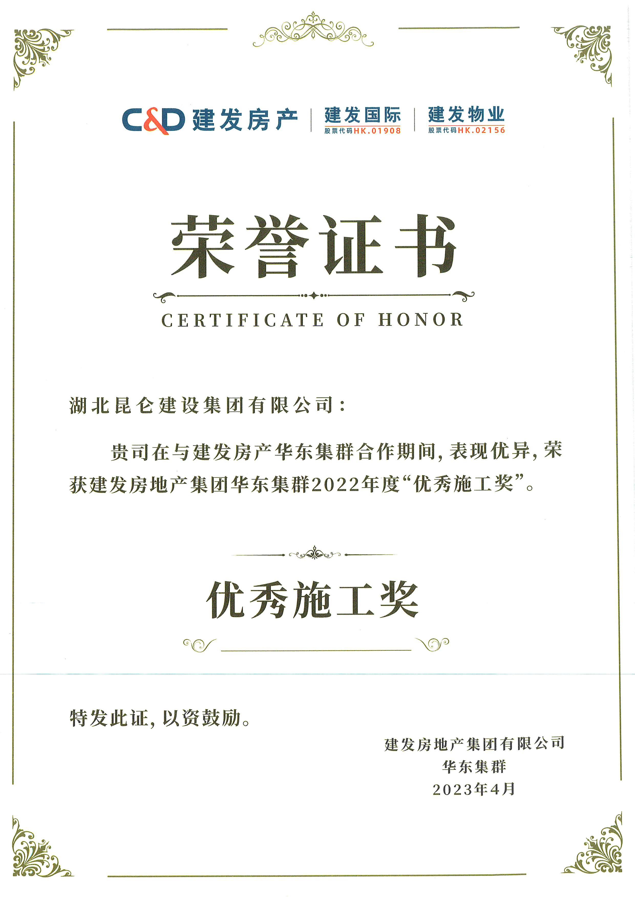 建發(fā)集團(tuán)2022年度優(yōu)秀施工獎(jiǎng)
